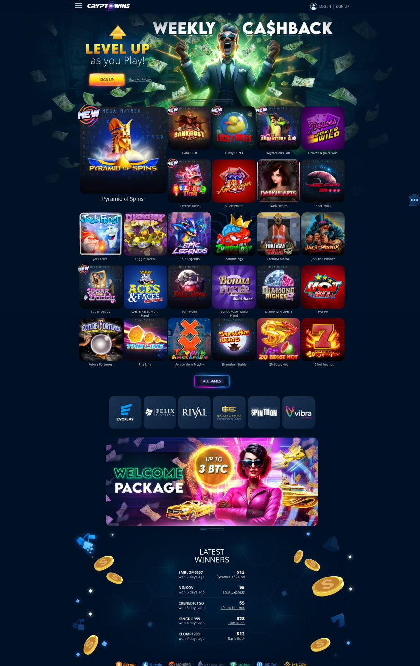 CryptoWins Casino has a wide range of products when it comes to the type of entertainment they offer their players. The casino is paradise to slots fans as it offers over 1000 titles, powered by some of the most prominent developers of online gambling solutions worldwide.